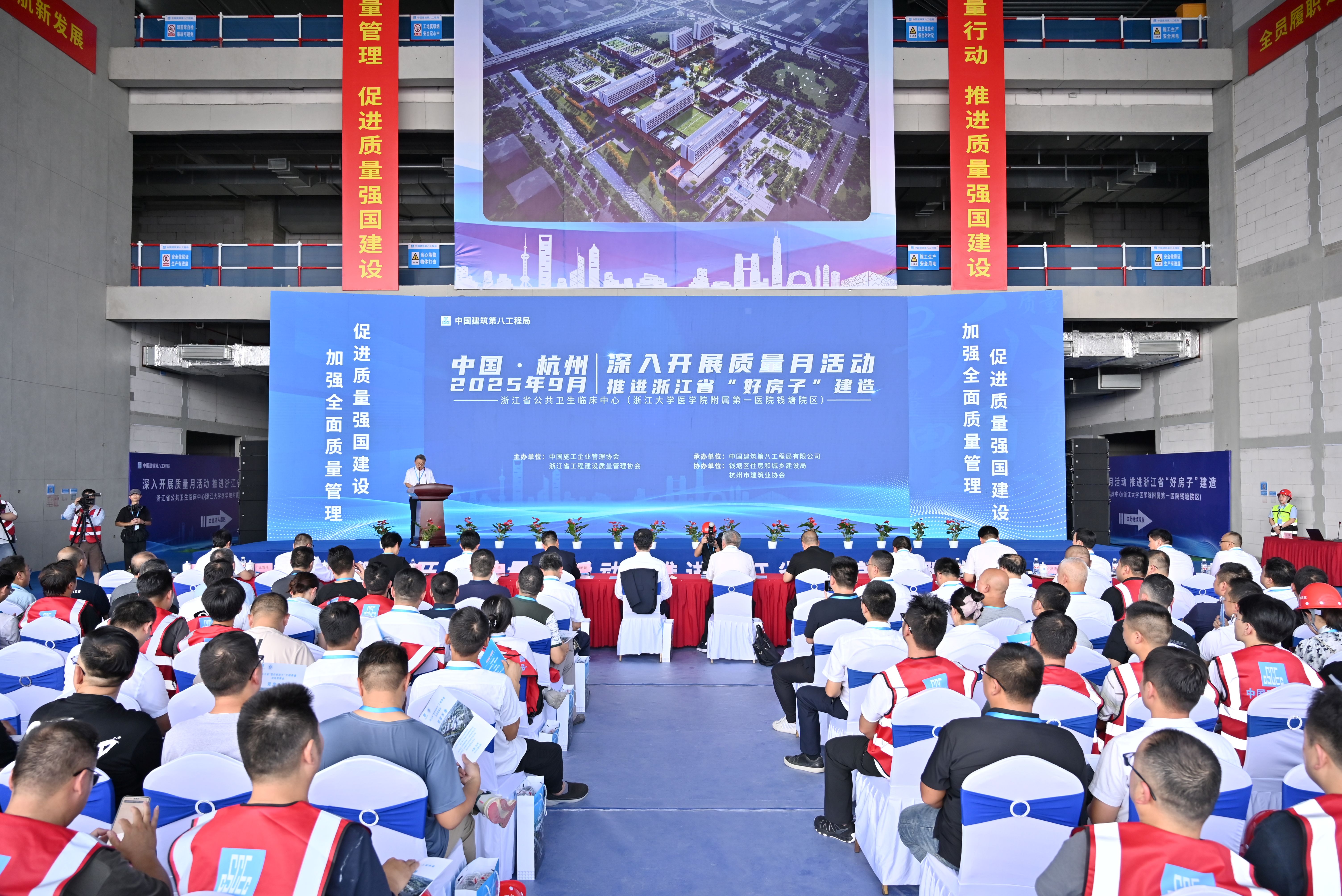 9月16日,浙江省“醫(yī)療好房子”工程質(zhì)量現(xiàn)場(chǎng)觀摩會(huì)在中建八局一公司浙江大學(xué)醫(yī)學(xué)院附屬第一醫(yī)院錢塘院區(qū)項(xiàng)目舉行?;顒?dòng)由中國(guó)施工企業(yè)管理協(xié)會(huì)、浙江省工程建設(shè)質(zhì)量管理協(xié)會(huì)主辦,中建八局承辦,錢塘區(qū)住房和城鄉(xiāng)建設(shè)局、杭州市建筑業(yè)協(xié)會(huì)協(xié)辦。浙江省住房和城鄉(xiāng)建設(shè)廳、浙大一醫(yī)院、中建八局、杭州市建筑業(yè)協(xié)會(huì)、錢塘區(qū)衛(wèi)健局等相關(guān)負(fù)責(zé)人,浙江省各地市行業(yè)主管部門、行業(yè)協(xié)會(huì)、企業(yè)代表等共400余人參加。