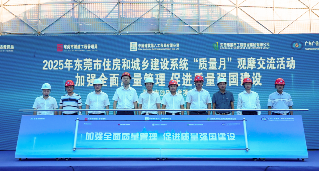 2025-09-19 2025年東莞市“質量月”觀摩走進中建八一沙田中學項目 9月18日,2025年東莞市住房和城鄉建設系統“質量月”現場觀摩交流會走進中建八局承建的東莞市沙田中學(灣區中學)項目,交流管理經驗和先進成果,助力全市工程質量安全水平提升。